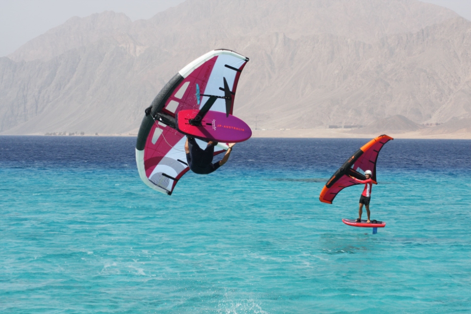 Les cours, dispensés en individuel ou en binôme, sont encadrés par un moniteur en wingfoil à vos côtés. Grâce aux planches et ailes Cabrinha et JP, spécialement conçues pour les débutants, vous apprendrez rapidement le wingfoil à Dahab.