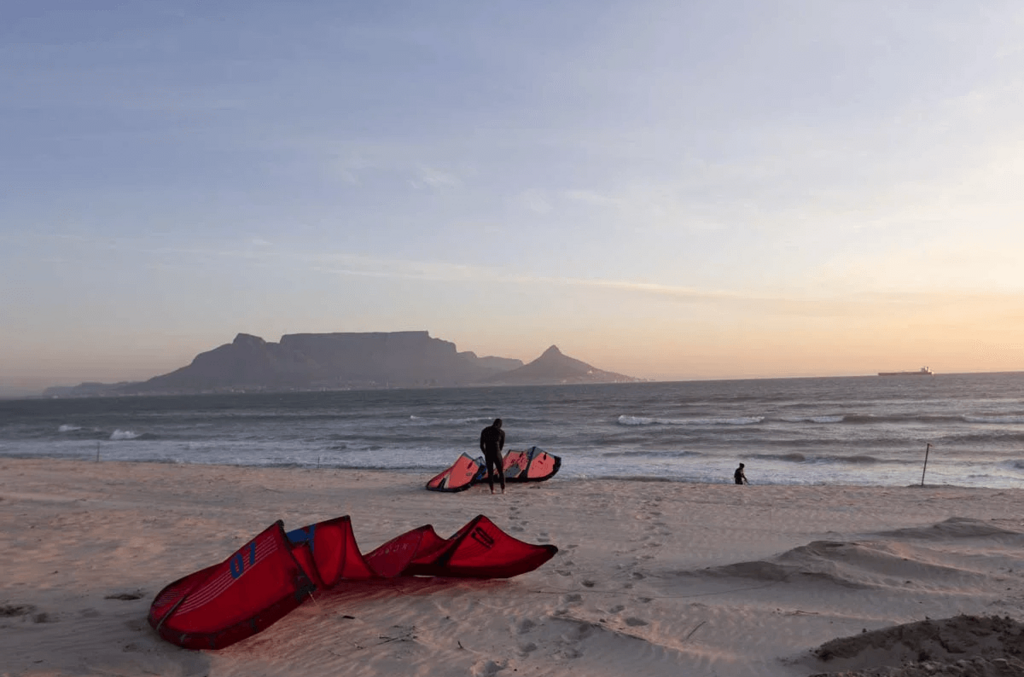 Découvrez Bloubergstrand à Cape Town, un spot légendaire pour le surf et kitesurf. Profitez de conditions idéales et d’une côte spectaculaire entre Big Bay et Sunset Beach
