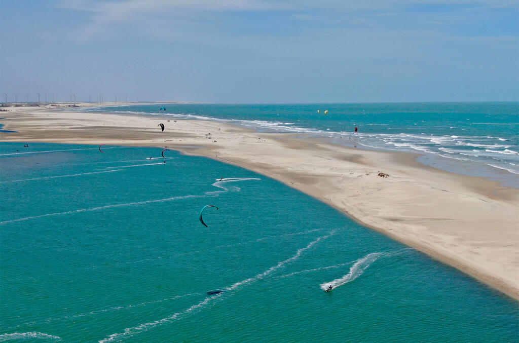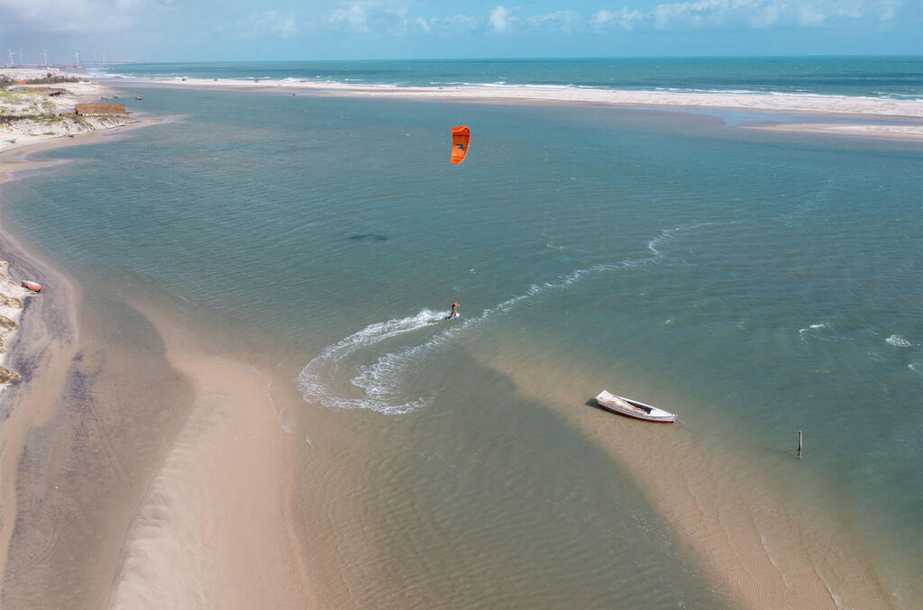 Au cœur de Parajuru, le centre KBC propose cours et stages de kitesurf dans une lagune superbe, bordée de dunes, sur la côte sauvage du nord-est du Brésil.
