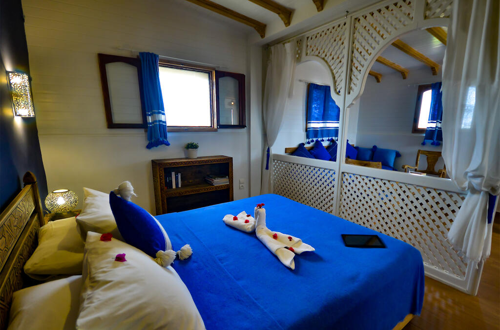 La décoration des chambres s'inspire de la culture marocaine, avec de l'artisanat local, des couleurs et des mosaïques du pays.