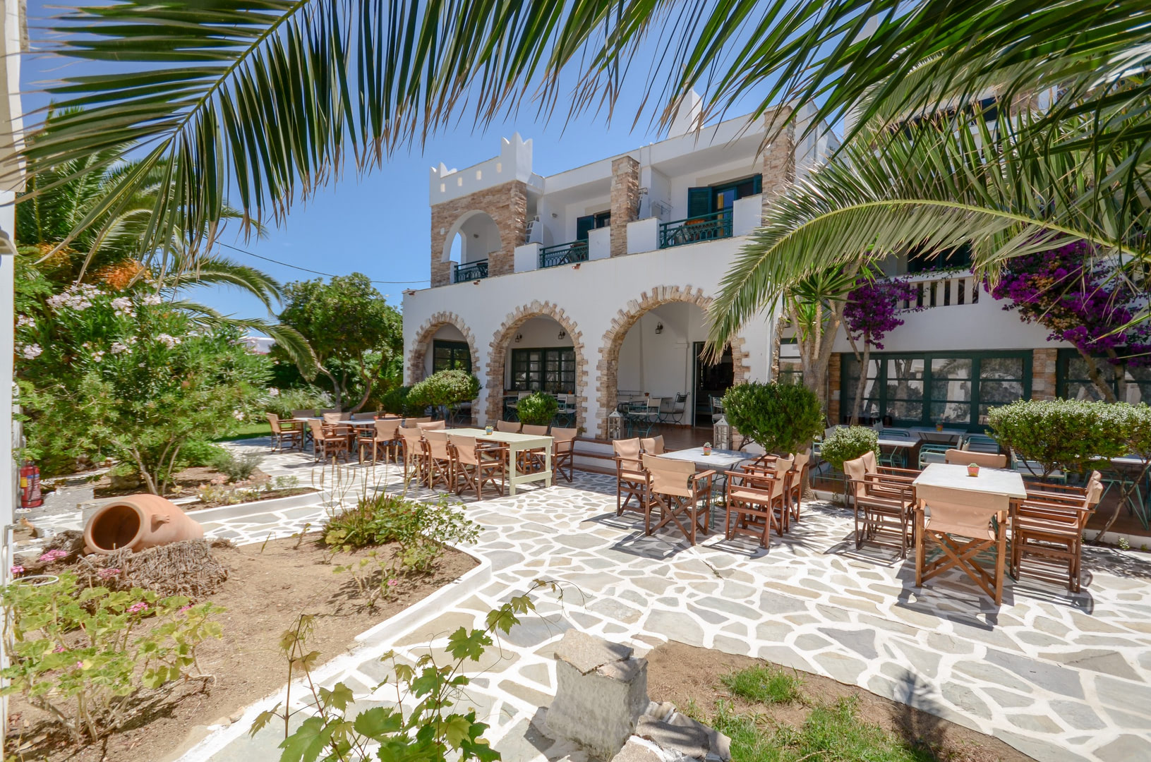 Un hôtel qui s'insère parfaitement dans l'ambiance glisse du spot. Simple et charmant grâce à son architecture traditionnelle des Cyclades, il fait bon y séjourner.