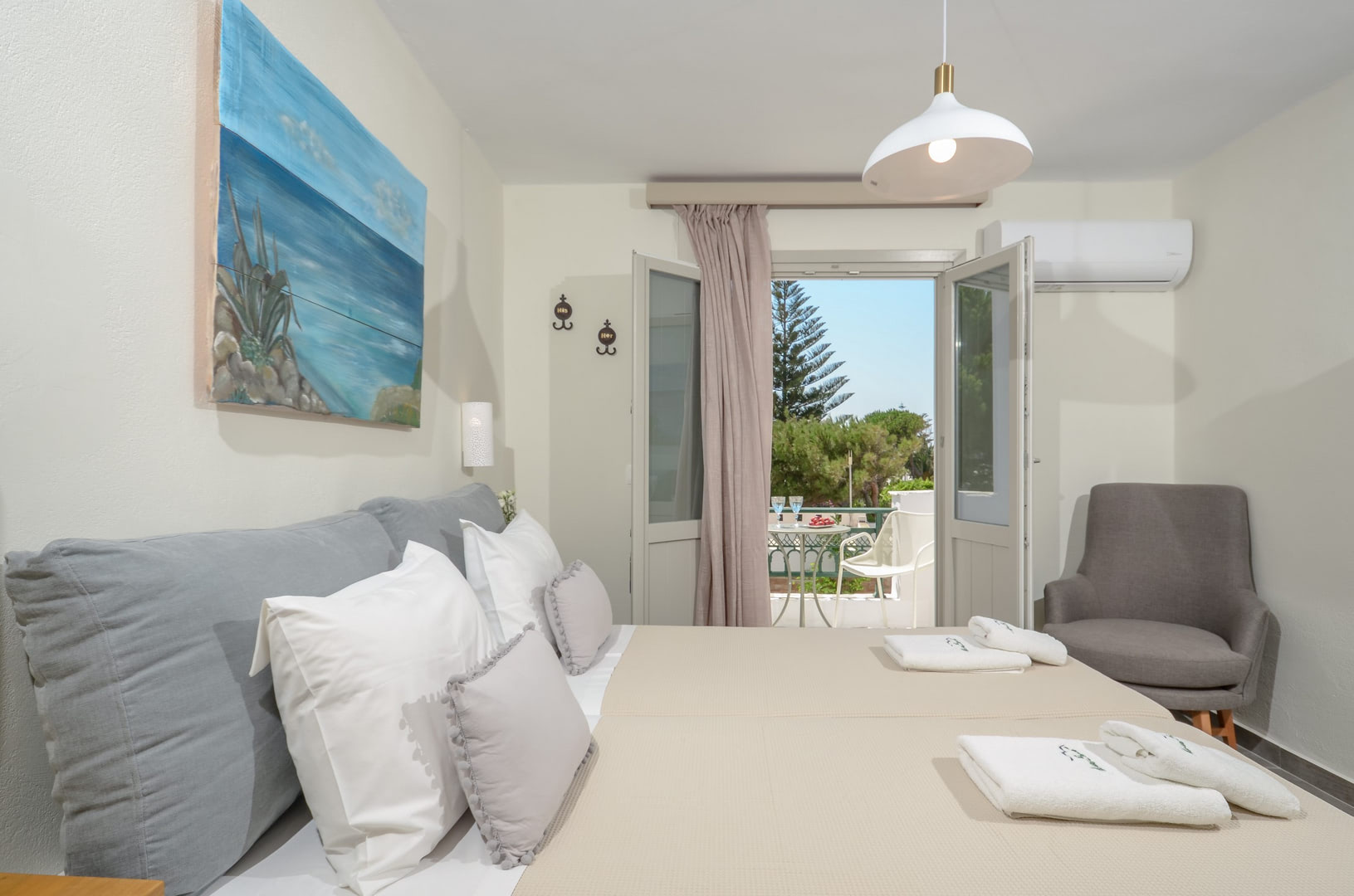 Les chambres sont réparties sur 4 bâtiments entourant la piscine. Toutes les chambres sont équipées d'une petite salle de bain avec douche, climatisation, frigo, télévision, coffre fort, et disposent d'un balcon ou d'une terrasse. Chambres communicantes possibles (sous réserve de disponibilité).