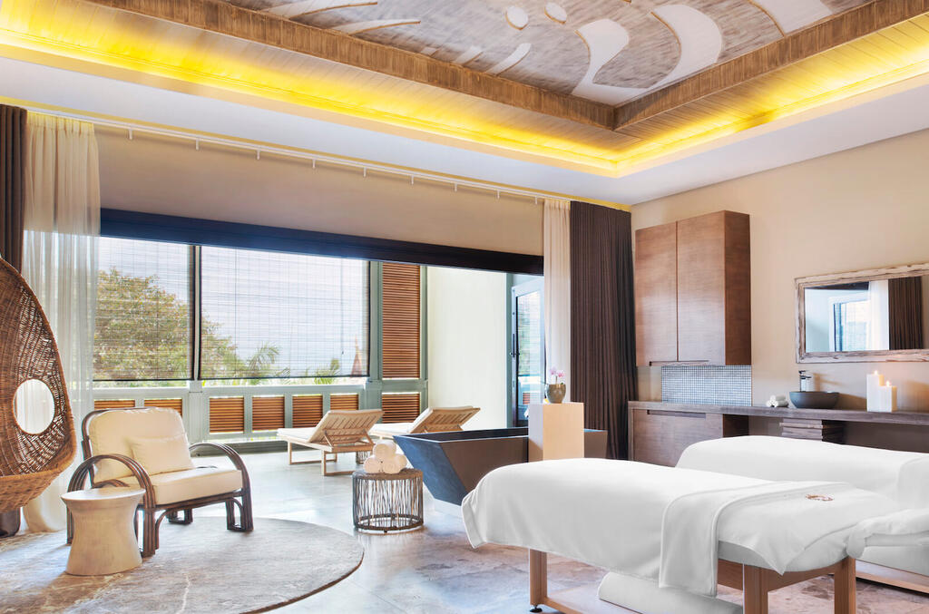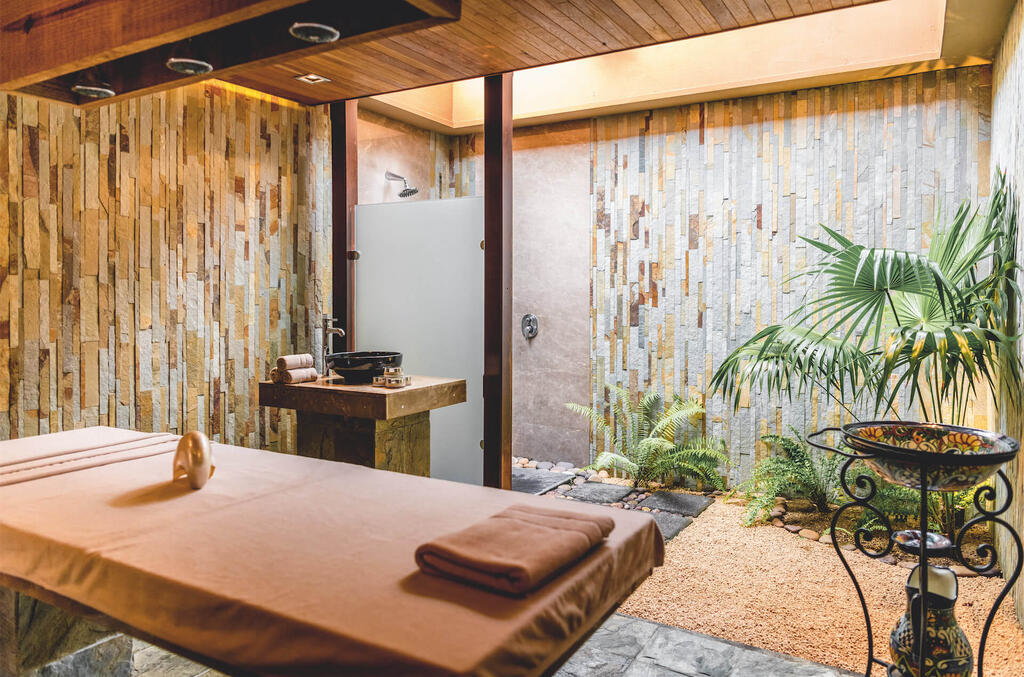 - 8 salles de massage intérieures, dont deux salles de massage pour couple (douche extérieure disponible dans chaque chambre)