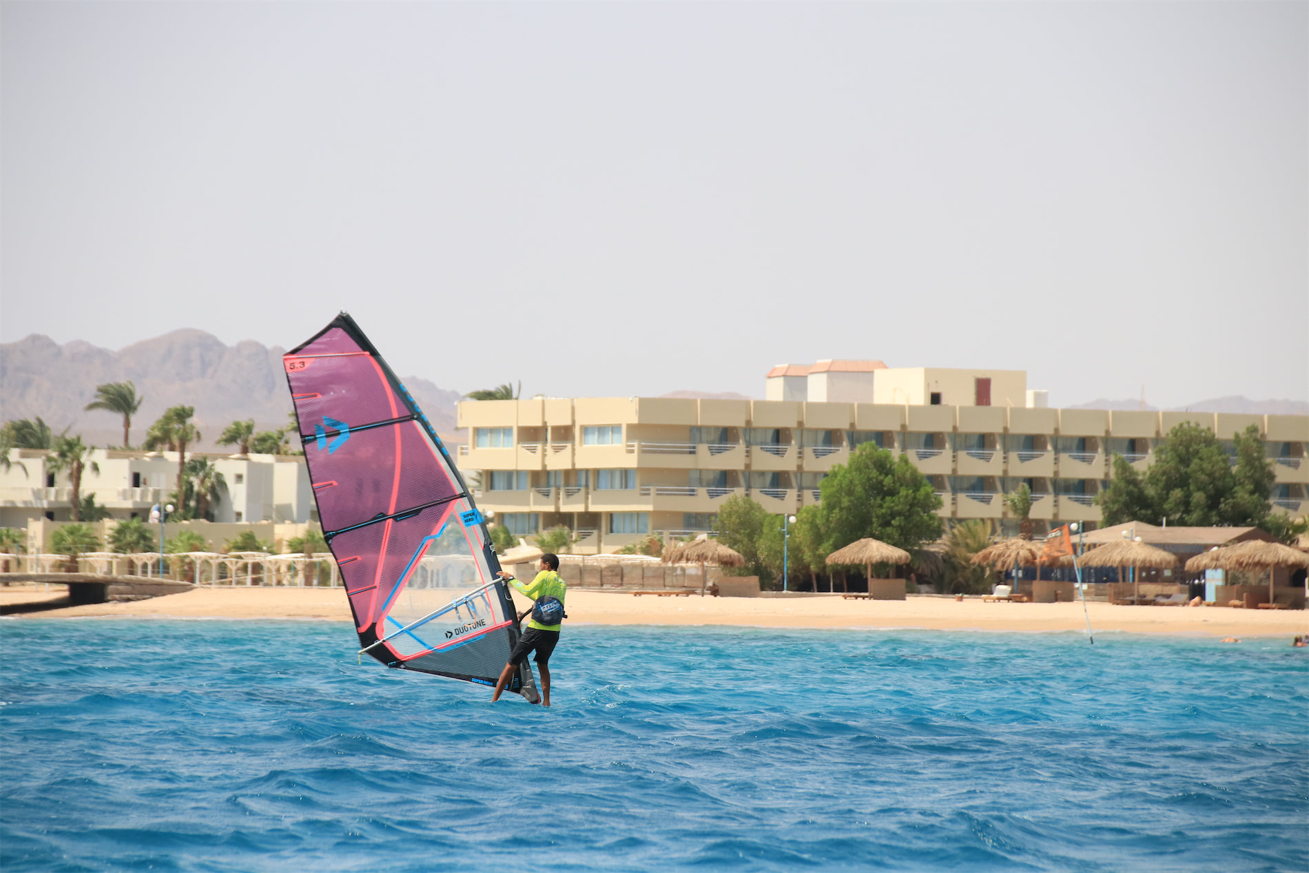 La baie de Safaga est protégée de la houle, le vent est régulier toute l'année. Plus de 300 jours de vents sont comptabilisés allant de 4 à 7 beauforts. Le club propose de la location de wingsurf et des stages de wingsurf et wingfoil. A vous les longs bords en freeride, le spot est à vous !!
