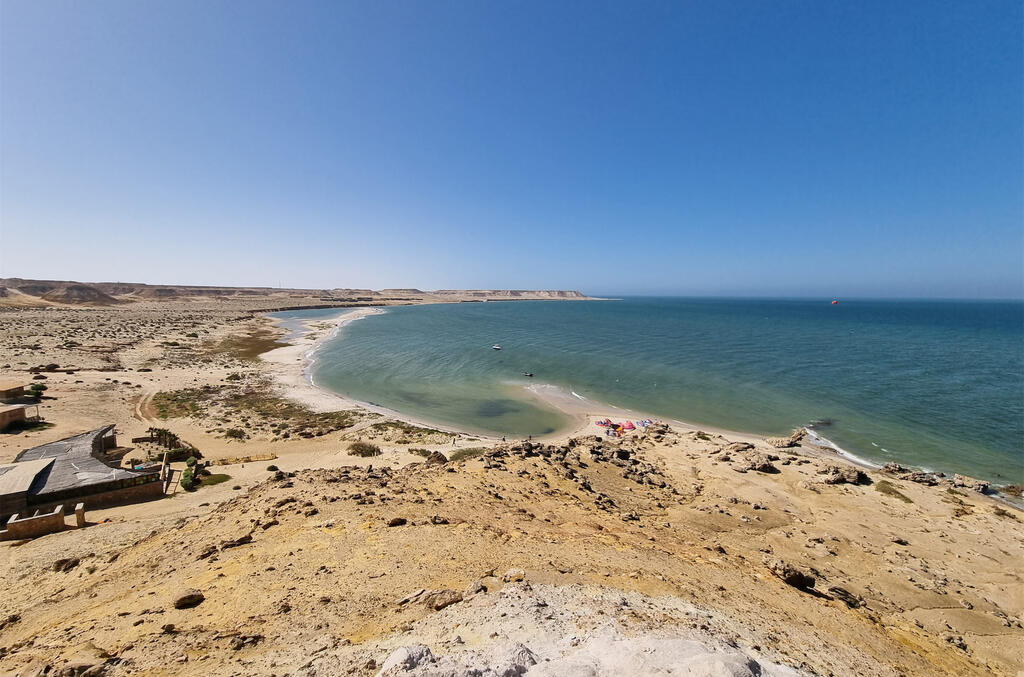 Pour la vue inoubliable, peut-être la plus belle de tout Dakhla : face à la Dune Blanche et entouré par les canyons, le dépaysement est absolu.